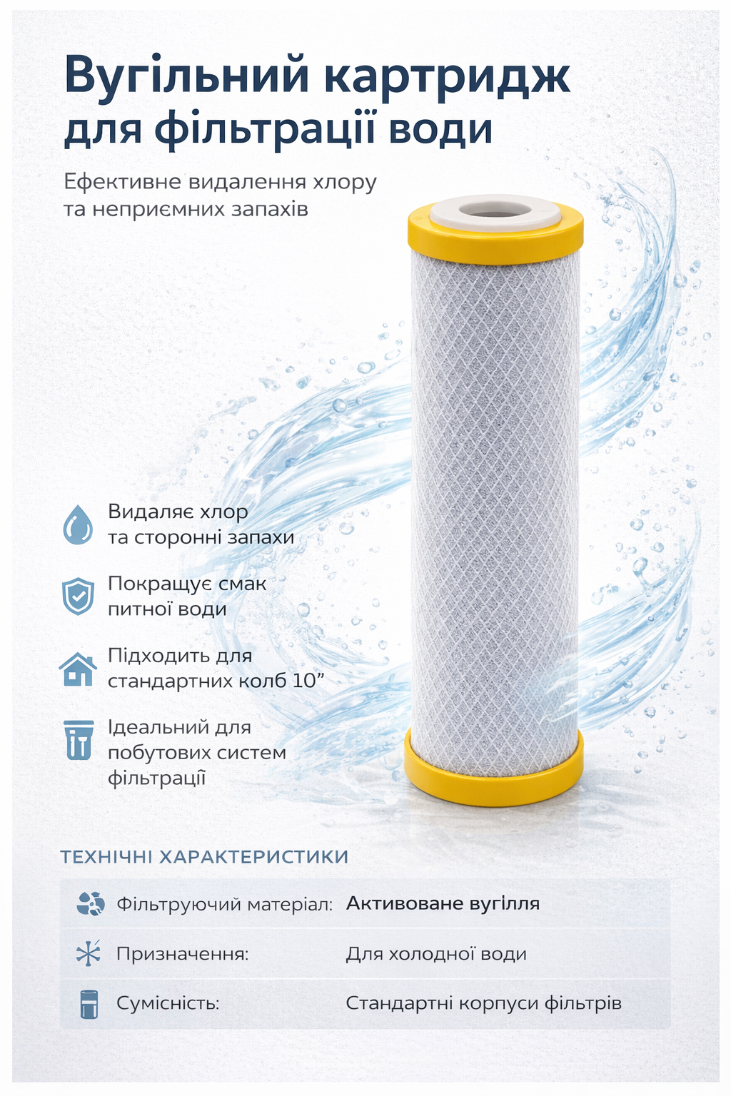 Картридж из спрессованного активированного угля 2,5"×10" AQUATICA (9772132)