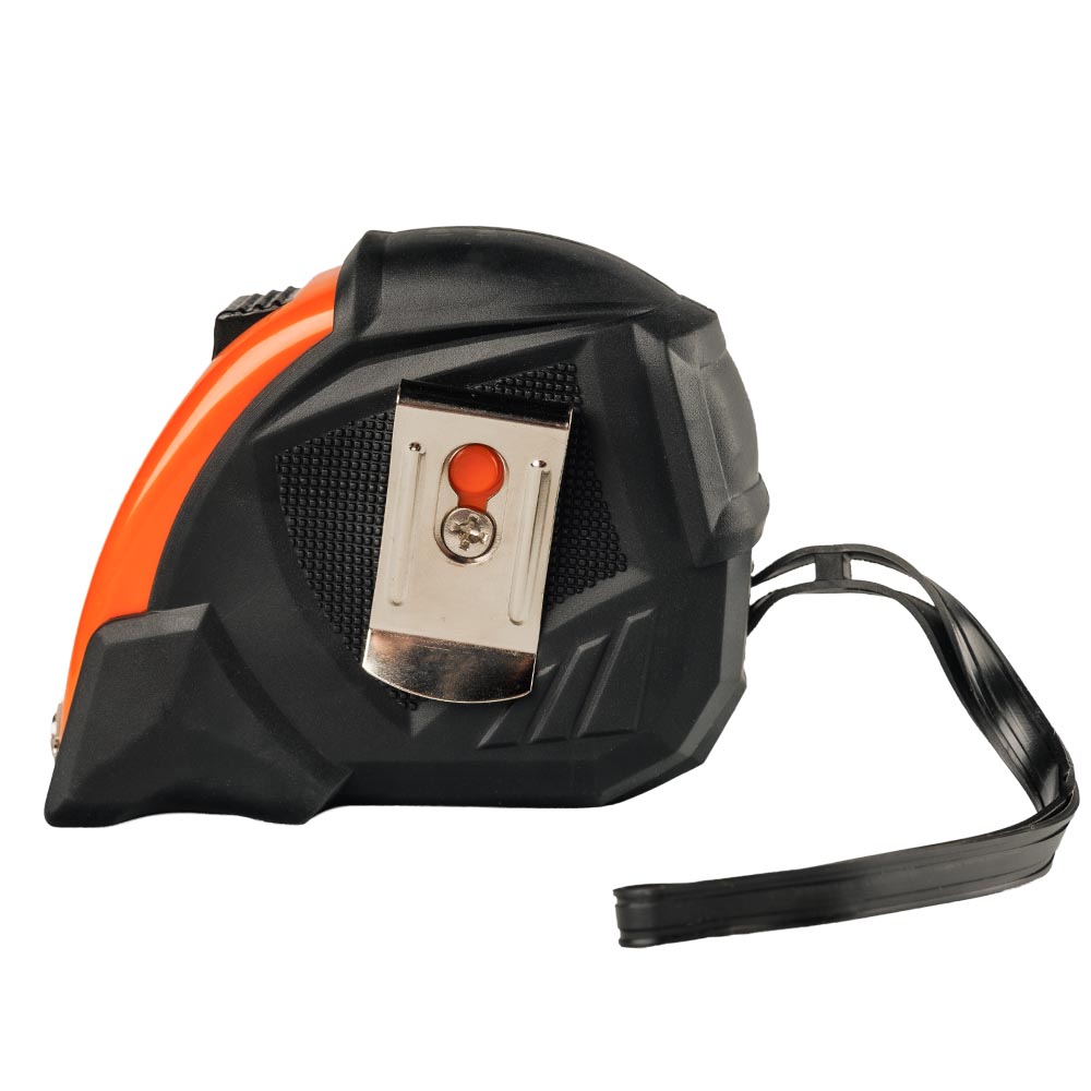 - Резиновое покрытие TPR обеспечивает надёжное сцепление с рукой, предотвращает выскальзывание рулетки во время работы и выполняет амортизирующую функцию при падении