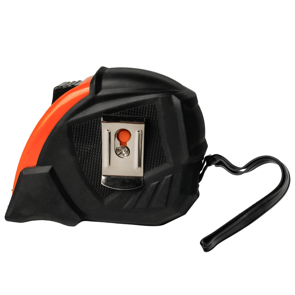 - Резиновое покрытие TPR обеспечивает надёжное сцепление с рукой, предотвращает выскальзывание рулетки во время работы и выполняет амортизирующую функцию при падении