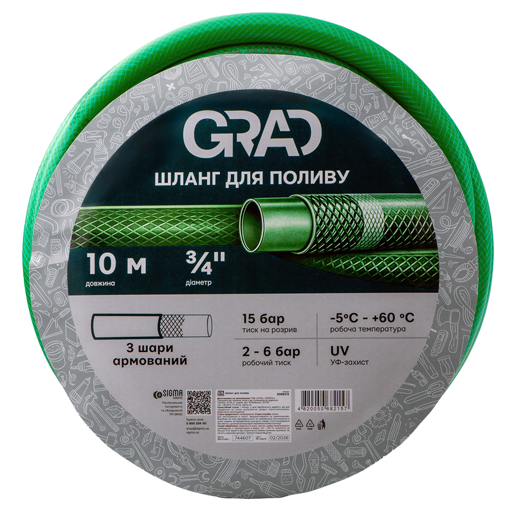 Шланг для полива 3 слоя армированный ¾" 10м GRAD (5068215)