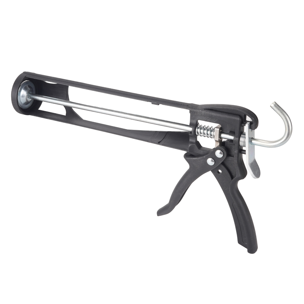 Пистолет для герметика со скелетной конструкцией легкий и удобный в использовании. Корпус изготовлен из прочного нейлона, что снижает массу инструмента без потери надежности. Идеально подходит для точного нанесения герметиков, силиконов, клеев в стандартных тубах 225 мм.