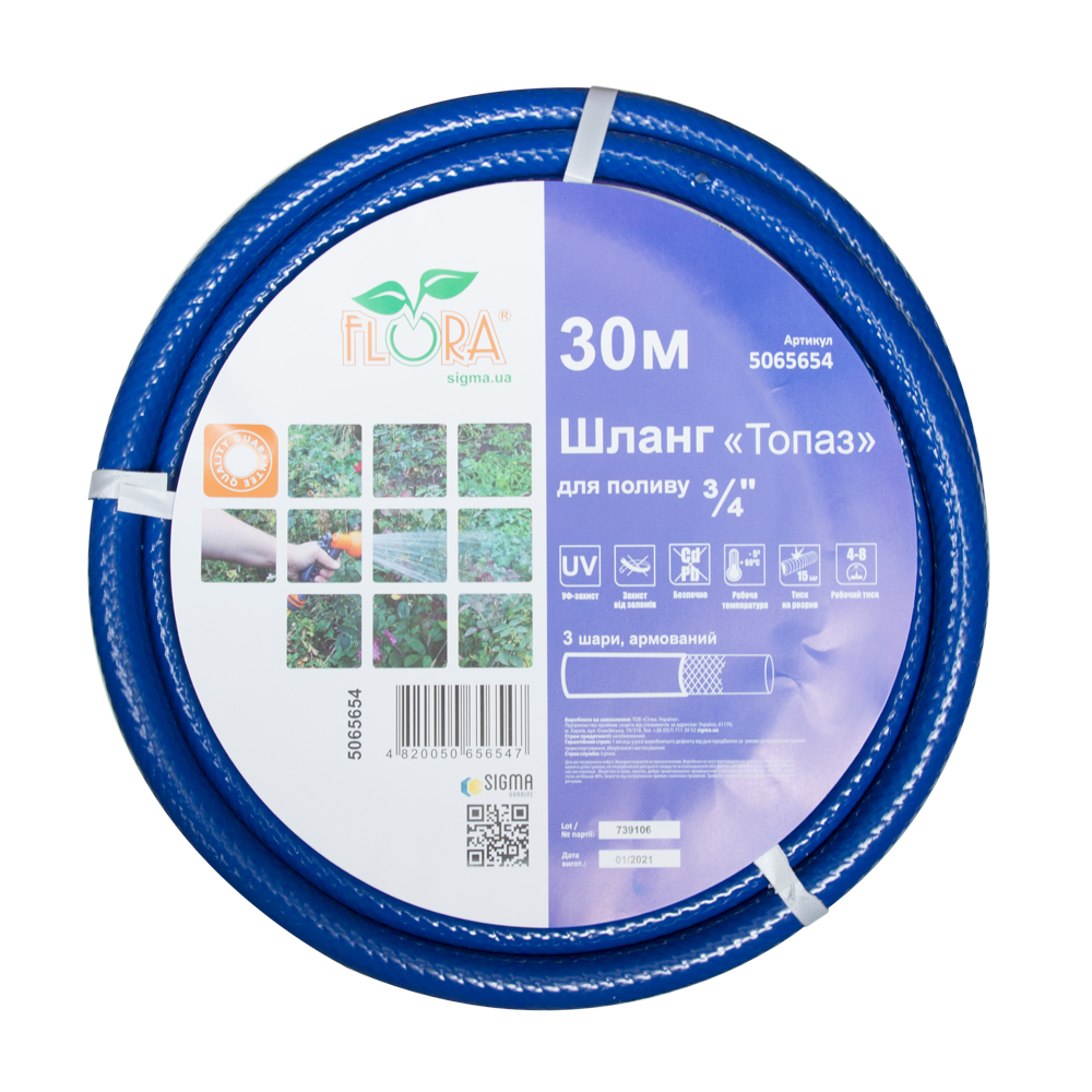 Шланг для полива Топаз 3 слоя армированный 3/4" 30м FLORA (5065654)